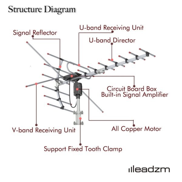 Are you intending to find a high quality open antenna? You are in the right place. This Leadzm TA-001 360°Rotation UV 45-230MHz/470-860MHz 15-22dB Outdoorn Antenna is made of high quality plastic & aluminum material, durable and practical in daily use. With the light weight and compact design, it is easy for you to operate. And it supports 360°rotation which will provide a good signal. With low power consumption and environment friendly design, it is worth to buy it! So come and order it now!