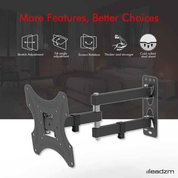 Are you still having trouble with putting your TV? This LEADZM 26-50″ Adjustable Wall Mount Bracket Rotatable TV Stand TMX200 with Spirit Level can avoid the trouble of how to put you TV. This TV stand can save space of your Living room and provide a large space for you and your families. You can Watch TV when you do yoga or play games with your children. The maximum weight of 30 kg makes the TV stand more stable and reliable. We hope our products can bring you more perfect watching experience.